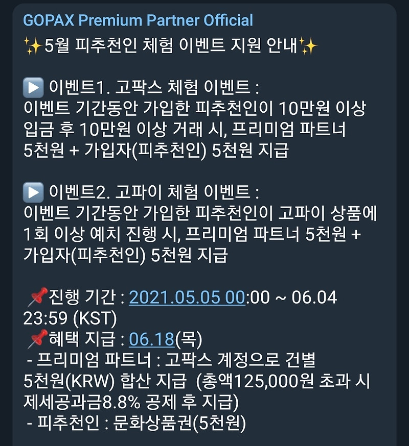 링크를 통해 가입하시면 추천인은 1만원 프리미엄 파트너는 1만원 가량의 혜택이 주어져요. 입력 후 회원가입 계좌 등록하면 즉시 현금 5천원 지급. 고팍스 회원가입 이벤트 1 고팍스 프리미엄 파트너 추천인 a5r5q3.