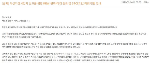 가상화폐 거래소 폐쇄 pg 박은주 제작 사진합성일러스트 서울연합뉴스 성서호 기자 17일까지 원화 마켓 종료 등 가상자산코인 사업자의 영업 변경을 공지해야 하는 상황에서 지닥과 후오비 코리아 고팍스 등 일부 거래소들은 마지막까지 은행 실명계좌. 이준행 고팍스 대표왼쪽와 이병선 디지털미래정책연구소장이 이야기를 나누고 있다. 특금법에 따른 암호화폐 거래소 등록 시한9월 24일이 다가옴에 따라 여러분이 거래하시는 암호화폐 거래소의 폐쇄폐업 가능성을 확인해보셔야 한다고 말씀드렸습니다.